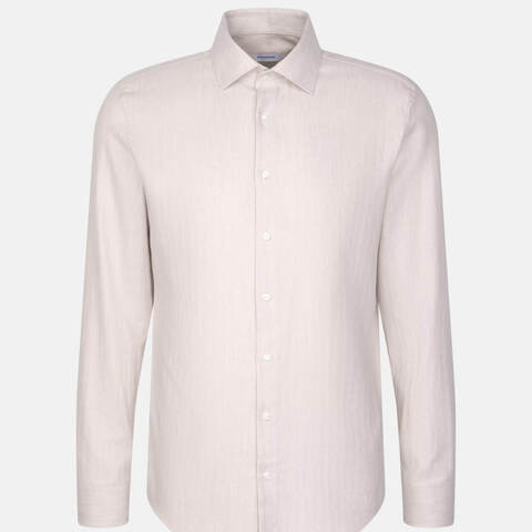 Сорочка мужская Seidensticker Slim Fit 01.845463-06 бежевая из тонкой фланели.